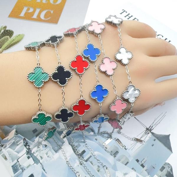 Ladies Four-leaf Clover Bracelet, 18K Gold-plated Stainless Steel Lucky Four-leaf Clover Bracelet, Silver Chain Bracelet, Ladies' Jewelry Gift Images |