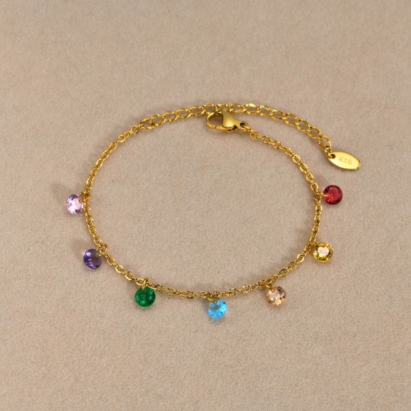 Fashion Luxury Lady Women's Jewelry Gold Plated Stainless Steel Charm Bracelet with Colorful Zirconia for Women Images |